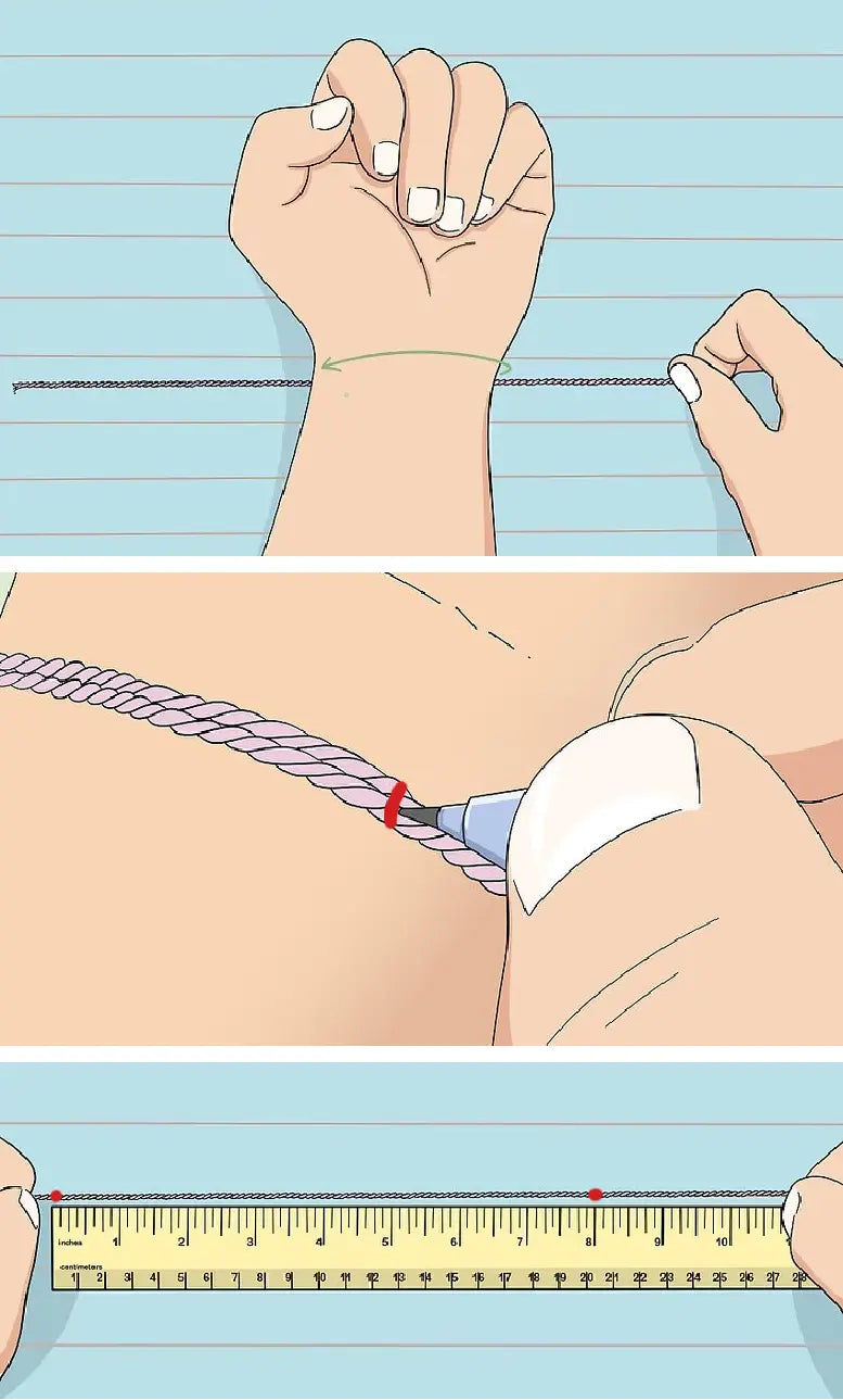 VEĽKOSŤ:Pre výber správnej veľkosti si zmeraj pomocou krajčírskeho metra alebo špagátika, resp. pásika papiera obvod svojho zápästia. Meraj tesne na kožu, nenechávaj rezervu. Nameranú hodnotu si zvoľ pri výbere náramku. My Ti následne vyrobíme správny rozmer náramku, ktorý sadne k tvojej rúčke ako uliaty!
